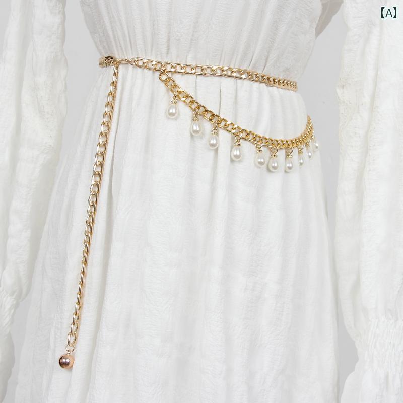 ウエストãƒã‚§ãƒ¼ãƒ³ レディース ランタンパール ãƒã‚§ãƒ¼ãƒ³ 細ベルト ワンピース ドレス ウエストマーク çµå©šå¼ パーティー デート æ™®æ®µä½¿ã„ ä¸Šå“ ã‚¨ãƒ¬ã‚¬ãƒ³ãƒˆ ãれã„ã‚ è¯å¥¢ ファッションå°ç‰© ãƒãƒ³ã‚°