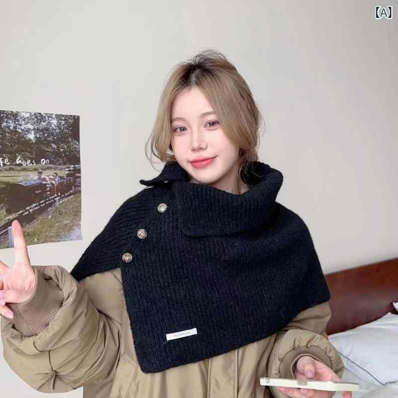 ニットスヌード レディース 女性用 ウール混 アクリル混 ボタン ãƒã‚¤ãƒãƒƒã‚¯ プルオーãƒãƒ¼ マフラー ショール 秋冬 防寒 ä¿æ¸©æ€§ æš–ã‹ã„ 無地 シンプル カジュアル 韓国風 普段使ã„