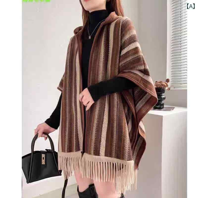 ãƒãƒ³ãƒãƒ§ レディース æ°‘æ—調 フード付ã 厚手 ショール アウター 春物 旅行 トラベル 普段使ㄠブランケット ã‚¦ãƒ¼ãƒ«èª¿ç´ æ カー゠グレー レッド オレンジ