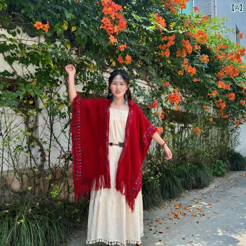 ショール ケープ ストール エスニック マント 旅行 ウェア フード スカーフ レディース 秋冬 厚手 æš–ã‹ã„ アウター レディース é’æµ·