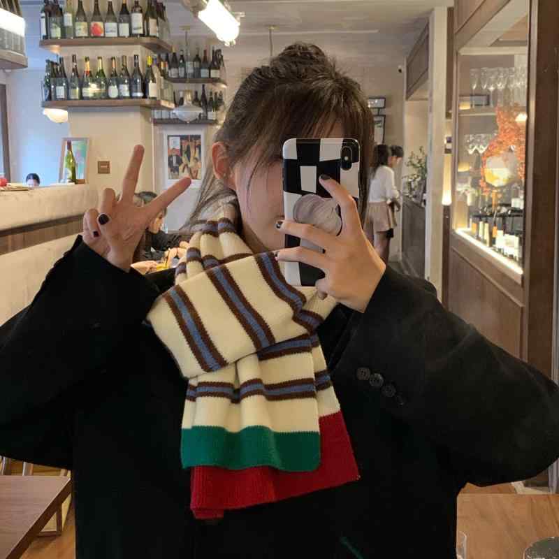 ç§‹ 冬 ニット マフラー 女性 ã‹ã‚ã„ㄠイン ストライプ スカーフ 柔らã‹ã 肌 優ã—ã„ å¦ç”Ÿ æš–ã‹ã„ スカーフ