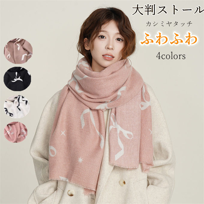 マフラー ショール レディース å¦ç”Ÿ 厚手 ä¿æ¸© 防風 カシミヤタッム2WAY リボン柄 シンプル 大判 高級感 秋冬 ç€å›žã—