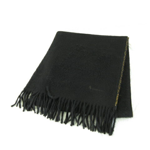 ã€ä¸å¤ã€‘アクアスã‚ュータムAQUASCUTUM シルクマフラー カシミヤ フリンジ ç·æŸ„ é»’ 茶 *A534 レディース ã€ãƒ™ã‚¯ãƒˆãƒ« å¤ç€ã€‘ 251023