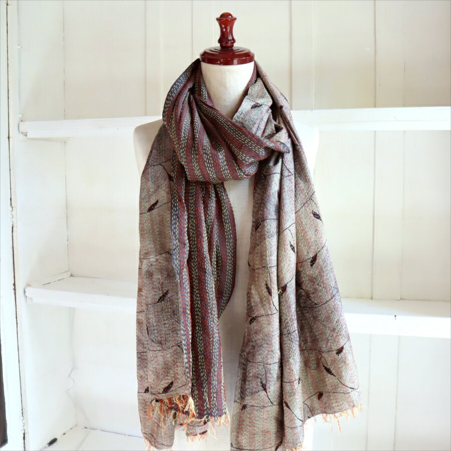 ã€10%OFFクーãƒãƒ³å¯¾è±¡ã€‘ã‚«ãƒ³ã‚¿åˆºç¹ ã‚·ãƒ«ã‚¯ã‚¹ãƒˆãƒ¼ãƒ« インド リサイクルサリー 206×82cm ã€ä¸€ç‚¹ã‚‚ã®ã€€ç¾å“】 大判ストール