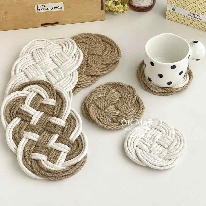 鍋敷き 鍋つかみ コースター ランチョンマット 綿 麻 混紡 断熱 耐熱 白