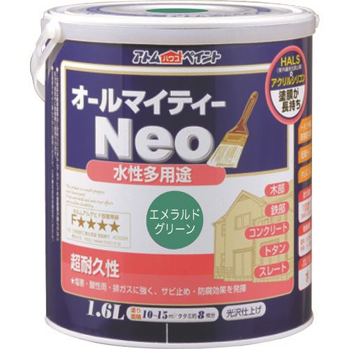 ■アトムペイント 水性オールマイティーãƒã‚ª 1.6L エメラルドグリーン 0000118829(2059124)×4[逿–™åˆ¥é€”ãŠè¦‹ç©ã‚Š][法人é™å®š][外直é€]