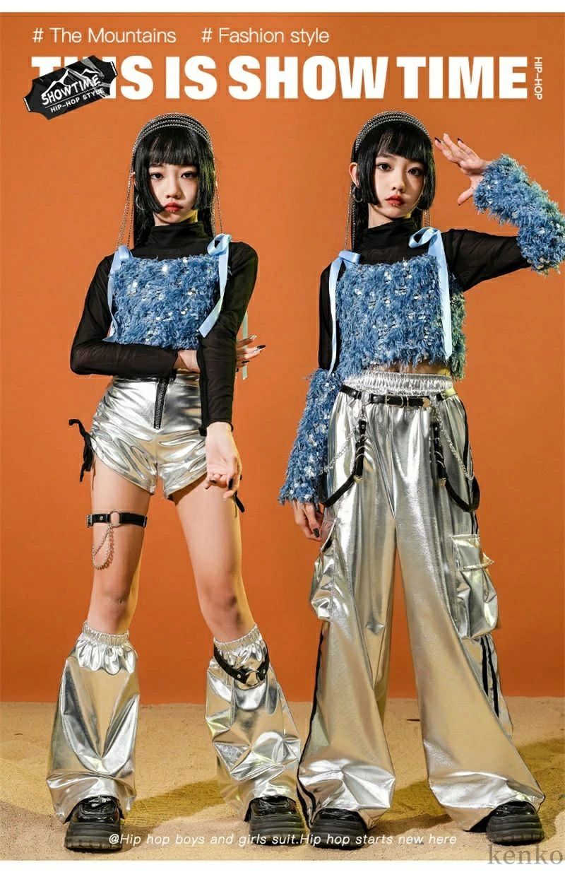 HIPHOP衣装 èˆžå°æœ シルãƒãƒ¼ ã‚ラã‚ラ é»’ アシンメトリーショートスカート ã‚ッズダンス æ¼”å‡ºæœ ã‹ã£ã“ã„ㄠ韓国風デザイン åä¾›æœ ãƒ€ãƒ³ã‚¹ã‚¦ã‚§ã‚¢ 派手 ヒップホップ ã‚ッズ ダンス衣装 セットアップ ç·´ç¿’ç€ ãŠã—ゃれ ã‚ッズ ダンス 衣装 女ã®å ç”·ã®å