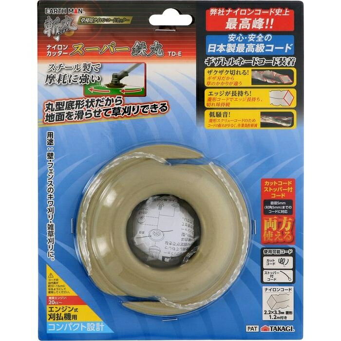 斬丸ナイãƒãƒ³ã‚³ãƒ¼ãƒ‰ã‚«ãƒƒã‚¿ãƒ¼ã‚¹ãƒ¼ãƒ‘ー鉄丸 TD-E(EARTH MAN) 高儀 4907052763869 ナイãƒãƒ³ã‚³ãƒ¼ãƒ‰ã‚«ãƒƒã‚¿ãƒ¼ 刈り込㿠鉄丸 安全è¨è¨ˆ é•·æŒã¡ 低騒音 スãƒãƒ¼ãƒ«è£½ コンパクト 地é¢åˆˆã‚Š æ—¥æœ¬è£½