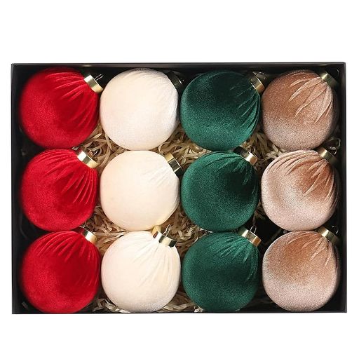 クリスマスオーナメントボール6cm12個入り布張り多彩ãŠã—ゃれボール飾りフック付ãクリスマスツリークリスマス新年パーティーデコレーション部屋店舗装飾ダッズ2色