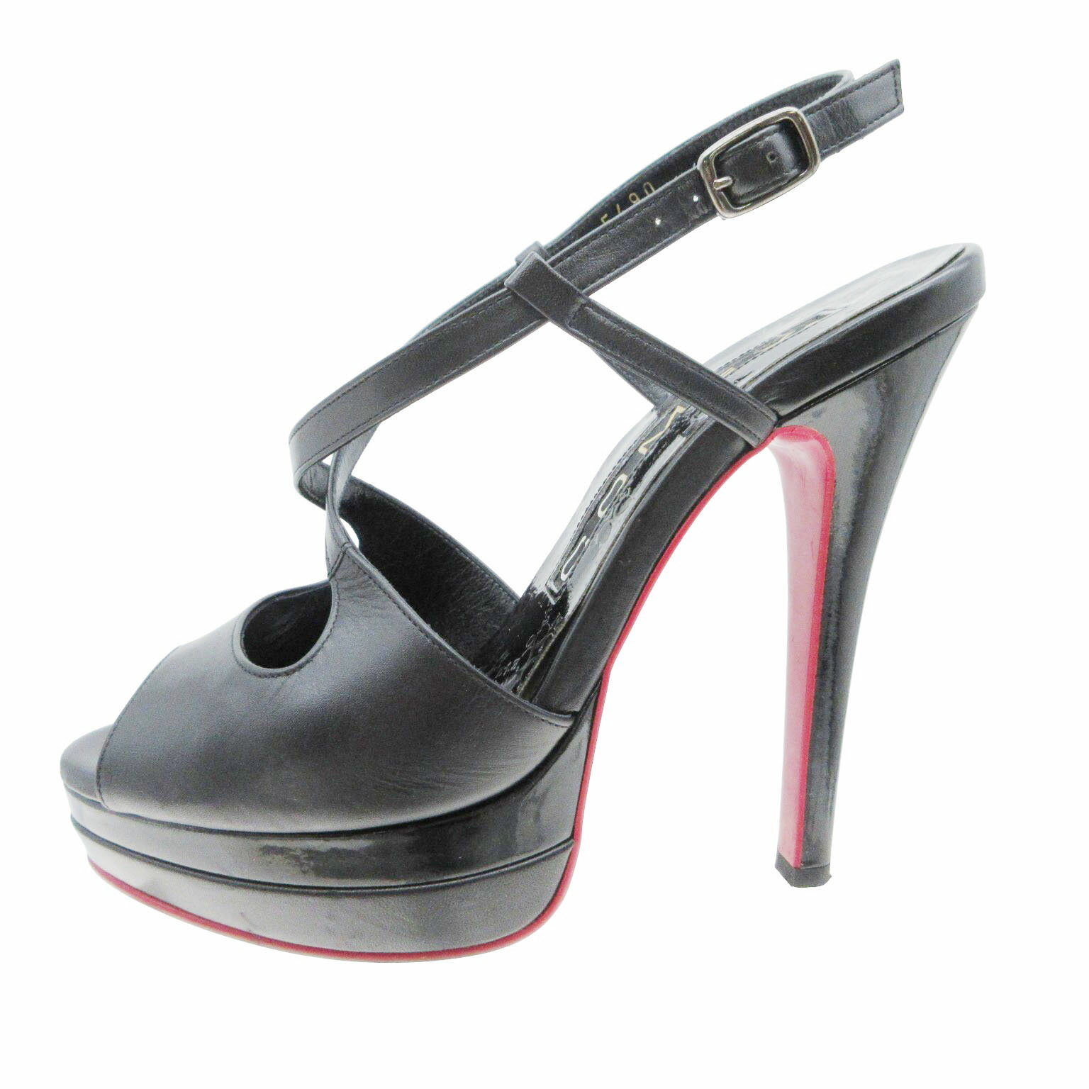 COMEX コメックス オープントゥ レザー サンダル クãƒã‚¹ã‚¹ãƒˆãƒ©ãƒƒãƒ— ãƒã‚¤ãƒ’ール é´ ã‚µã‚¤ã‚ºM 23cm ブラック é»’ レディース ã€ä¸å¤ã€‘