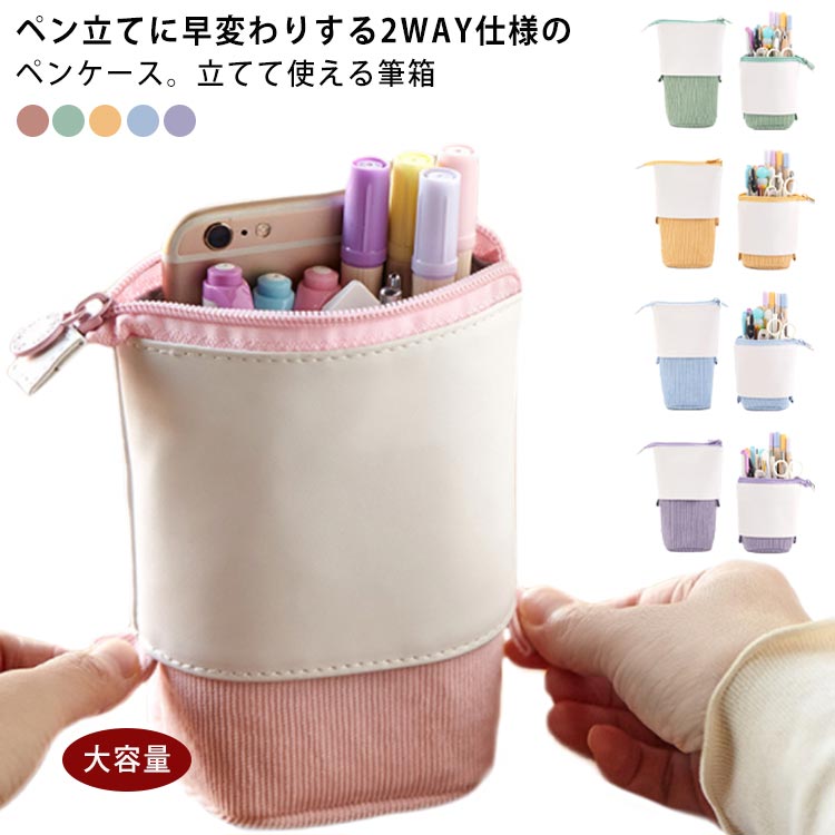 ペンポーチ ペンケース ペン立て 筆箱 自立 配色 女子 2WAY ふで箱 ふでばこ 大容量 軽い おしゃれ ペンスタンド 筆入れ 小物入れ プレゼント ファスナー 文房具 丈夫 化粧ポーチ 大人 可愛い ポーチ 無地 筆記用具 小学生 中学生 高校生 ギフト 高校生