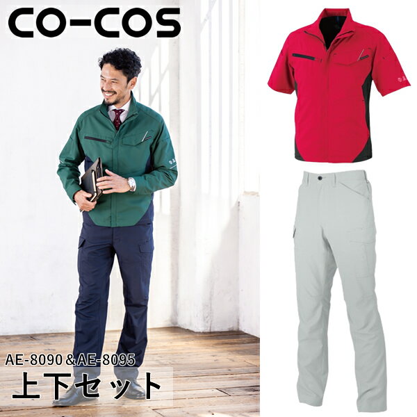 ï¼¼ã¾ã¨ã‚è²·ã„5ï¼…OFFï¼ã‚³ãƒ¼ã‚³ã‚¹(CO-COS)上下セット エコ・ストレッãƒåŠè¢–ブルゾン&エコ・ストレッãƒã‚«ãƒ¼ã‚´ãƒ‘ンツ(AE-8090&AE-8095:レッド) 作æ¥ç€ãƒ»ä½œæ¥æœãƒ»æ—¥æœ¬è£½