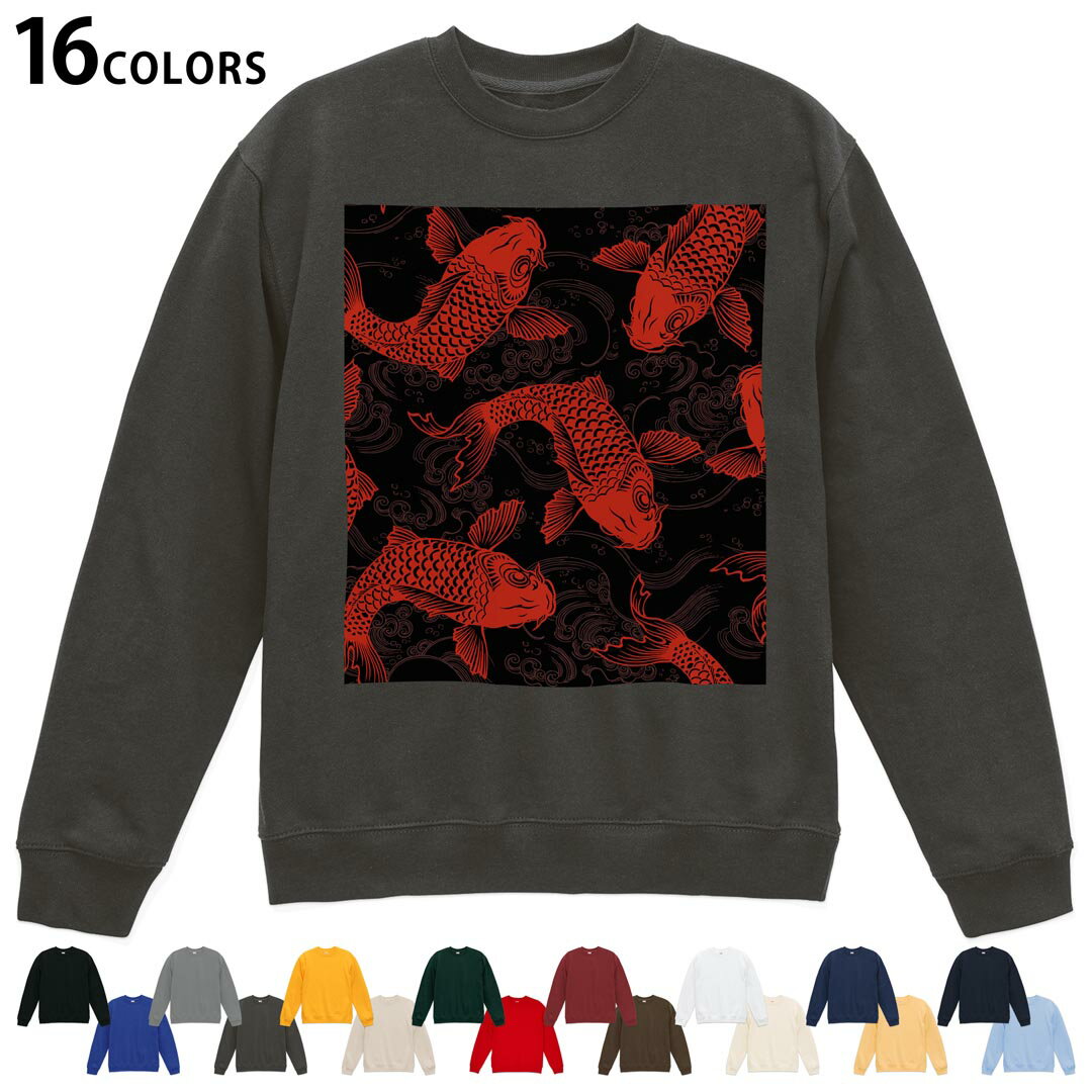 é¸ã¹ã‚‹16カラートレーナー メンズ レディース ユニセックス 長袖 デザイン S M L XL 2XL sweatshirt trainer スウェット 007975 和風 和柄 鯉 赤 レッド éš