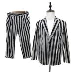 KARTIS セットアップ 上下 テーラードジャケット シングルボタン スラックスパンツ ãƒãƒ¼ãƒ«ã‚¢ãƒƒãƒ— ストライプ柄 S é»’ 白 â– GY61 メンズ