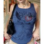 タンクトップ ノースリーブ 「 MEMECLE / メメクル ã€Y2K パンクグラフィックタンクトップ レディース