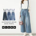 (5å–¶æ¥æ—¥ä»¥å†…å…¥è·) デニムパンツ サスペンダー ウエストゴムワイドパンツ ãŠã—ゃれ 大ãã„サイズ LARU ラルー
