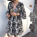 ボタニカル柄ãƒãƒ¥ãƒ‹ãƒƒã‚¯ レディース 10代 20代 30代 韓国ファッション カジュアル トップス 春 å¤ ç§‹ ãŠã—ゃれ リボン 花 ワンピース