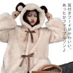 ファーコート ファーブルゾン レディース フェイクファー ショート ファージャケット ãµã‚ãµã‚ ã‚‚ã“も㓠アウター クマ耳 フード付ã 長袖 羽織り