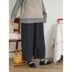 パンツ スラブ素材ポケット付ワイドパンツ股下48cm レディース