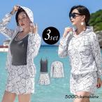 タンã‚ãƒ‹æ°´ç€ ä½“åž‹ã‚«ãƒãƒ¼ 3点セット ママ レディース ラッシュガード 長袖 フード セパレート ジップアップ 白 40代 50代 60代