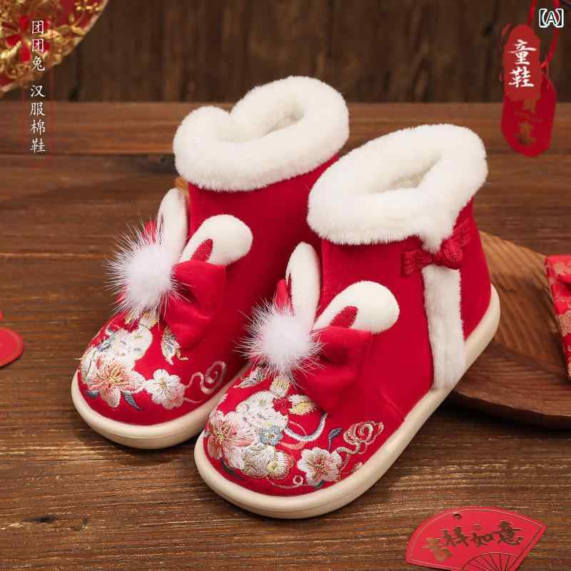 シューズ 女ã®å ã‚ッズ ベビー æ¼¢æœé¢¨ レトムè£ãƒœã‚¢ スノーブーツ èŠ±åˆºç¹ ã‚³ãƒƒãƒˆãƒ³ç´ æ ラãƒãƒ¼ã‚½ãƒ¼ãƒ« 防寒 ã‚ã£ãŸã‹ æ™®æ®µä½¿ã„ ãŠæ£æœˆ イベント 秋冬 深紅 アイボリー ピンク