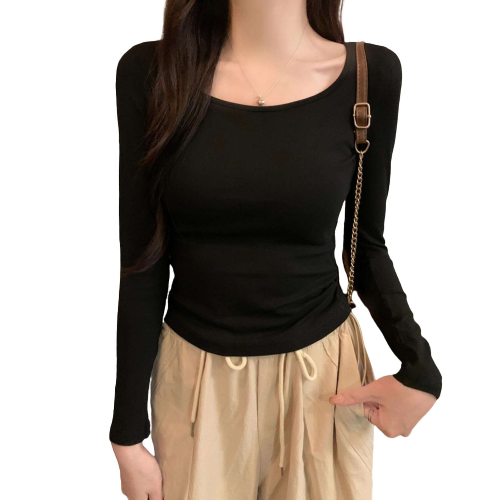 ã€é€æ–™ç„¡æ–™ã€‘[R10righten] トップス Tシャツ レディース インナーシャツ インナー ショート丈 タイト 長袖 Uãƒãƒƒã‚¯ 無地 薄手 è»½é‡ æŸ”ã‚‰ã‹ã„ å¿«é© ç¶¿æ··ç´¡ カジュアル シンプル ç€ã› 春 ç§‹ 冬 é€šå‹¤é€šå¦ æ™®æ®µç€ è‰²ï¼šãƒ–ãƒ©ãƒƒã‚¯ã€ã‚µã‚¤ã‚ºï¼šXL