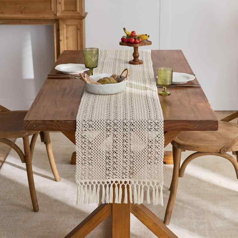 テーブルランナー テーブルセンター タッセル フリンジ ç·¨ã¿è¾¼ã¿ 北欧風 和モダン コットン ç¶¿æ·· ナãƒãƒ¥ãƒ©ãƒ« å¹¾ä½•å¦ é€ã‹ã—編㿠ダイニング 玄関 é´ç®± インテリア ãŠã—ゃれ 高級感 オールシーズン ホワイト アイボリー ãƒã‚¤ãƒ“ー
