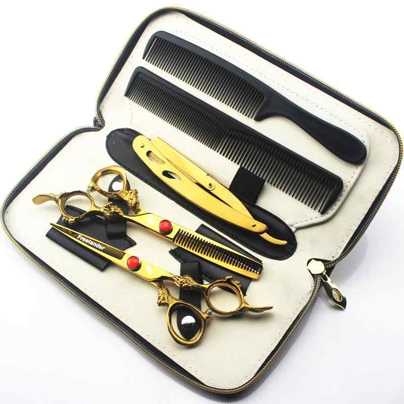 散髪用ãƒã‚µãƒŸ プãƒä»•様 金色ã®é¾æŸ„ 6.0インムステンレス製 ç²¾å¯†ç ”ç£¨ 定番モデル カットシザー セニングシザー ヘアカット 美容師 ç†å®¹å¸« 2点 セット