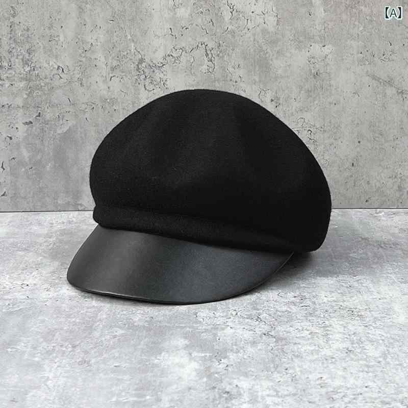 ã‚ャスケット レディース レザーã¤ã° ウールメルトン å…«è§’å½¢ 広ã¤ã° 画家帽風 ä¸Šå“ ã‚¨ãƒ¬ã‚¬ãƒ³ãƒˆ 高級感 ä¿æ¸© 防寒 防風 普段使ㄠãŠå‡ºã‹ã‘ 秋冬 é»’ ã‚ャメル