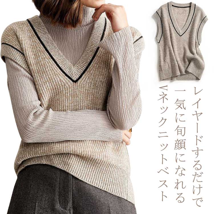 ニット ベスト Vãƒãƒƒã‚¯ レディース プルオーãƒãƒ¼ ノースリーブ トップス リブニット セーター é…色ライン é‡ãç€ ãƒ¬ã‚¤ãƒ¤ãƒ¼ãƒ‰ åŠè¢– ショート丈 シンプル 無地 ゆã£ãŸã‚Š ä½“åž‹ã‚«ãƒãƒ¼ 大人 ã‚レイ゠カジュアル ãŠã—ゃれ ã‹ã‚ã„ㄠ春 ç§‹ 冬 逿–™ç„¡æ–™