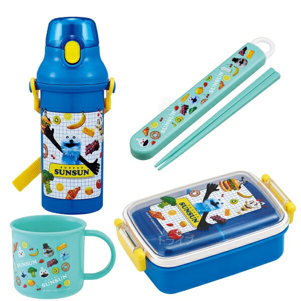 パペットスンスン ãŠè²·å¾—4点セット è§’åž‹ãŠå¼å½“ç®± 450ml 箸&箸箱 コップ プラ水ç’