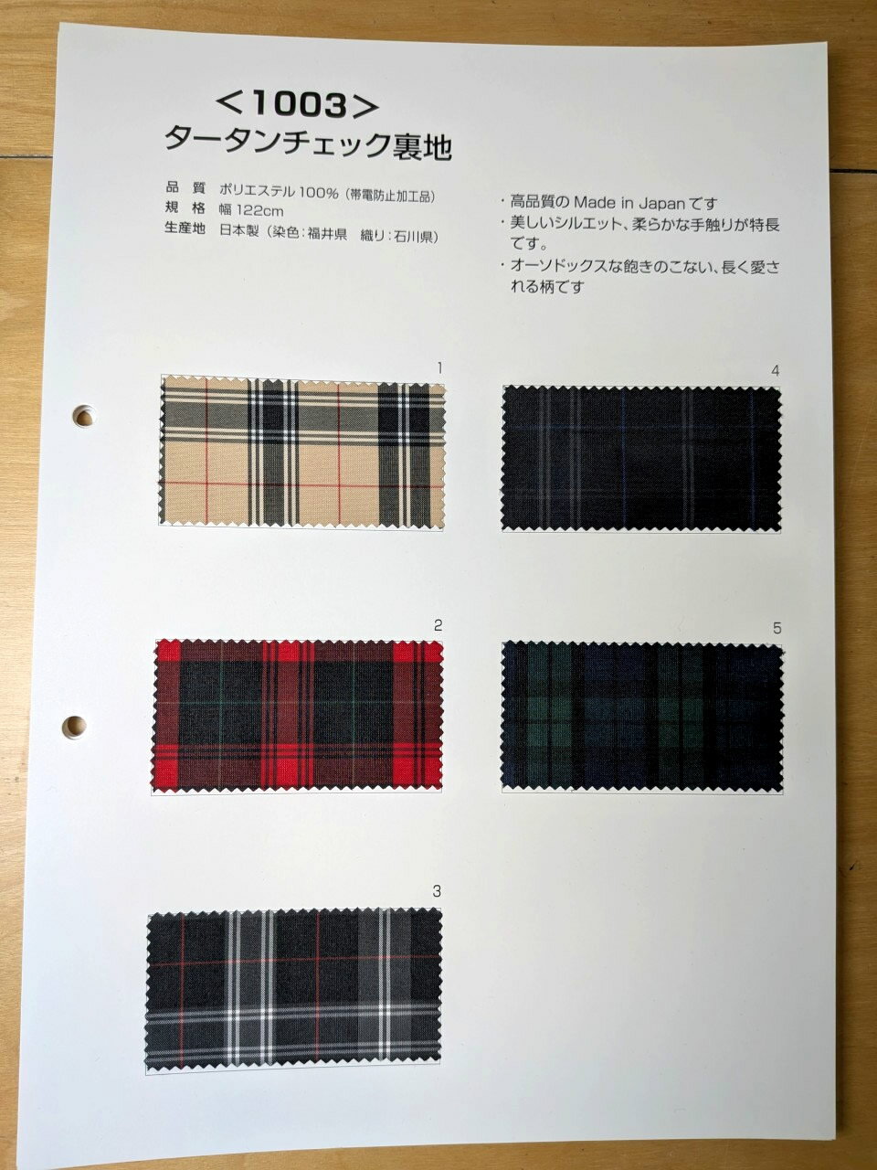 ã€é«˜ç´šã‚ªãƒ¼ãƒ€ãƒ¼å°‚門店】1003タータンãƒã‚§ãƒƒã‚¯æŸ„è£åœ°