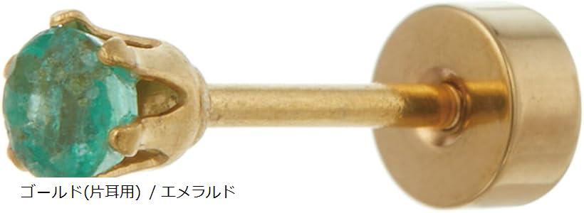 Piena ピエナ サージカルステンレス製 天然石 3mm 片耳用 1個売り è£ã㘠è£é¢ãƒ•ラット 一石 6本爪 ピアス レディース メンズ ゴールド / エメラルド (ゴールド(片耳用) / エメラルド)