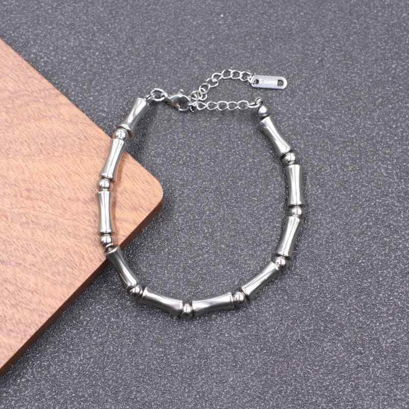 ブレスレット メンズ ãƒã‚¿ãƒ³é‹¼ ãƒãƒ³ã‚°ãƒ« 竹 デザイン ãƒãƒ³ãƒ‰ãƒ¡ã‚¤ãƒ‰ 幾何妿¨¡æ§˜ 手作り アクセサリー カップル ジェンダーレス 虎眼石 黒胆石 シルãƒãƒ¼ ブラック