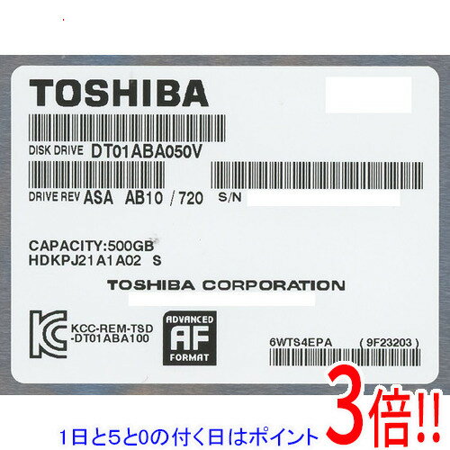 ã€1æ—¥ã¨5.0ã®ã¤ãæ—¥ã€18æ—¥ã¯ãƒã‚¤ãƒ³ãƒˆ3å€ï¼ã€‘ã€æ–°å“訳ã‚り(ç®±ããšãƒ»ã‚„ã¶ã‚Œ)】 TOSHIBA製HDD DT01ABA050V 500GB SATA600 5700