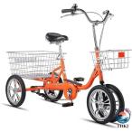 14インチ三輪自転車 高齢者用 三輪クルーザーバイク リ座席高さ調節可能 アショッピングバスケット付き 3輪バイク ダブルブレーキ ショッピング レクリエーショ