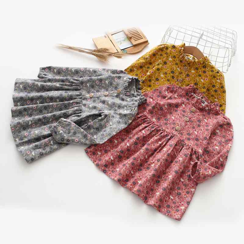 ワンピース ã‚ッズ 女ã®å åä¾›æœ ãƒ—ãƒªãƒ³ã‚»ã‚¹ãƒ‰ãƒ¬ã‚¹ Aライン è†ä¸ˆ 花柄 ギャザー フリル 春秋 グレー イエãƒãƒ¼ ピンク系 コットン