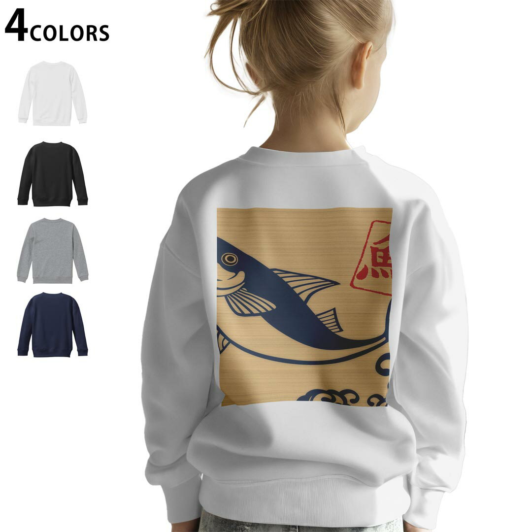 é¸ã¹ã‚‹3カラー ãƒãƒƒã‚¯ãƒ—リント スウェットレーナー ã‚ッズ 男女兼用 ç”·ã®å 女ã®å ユニセックス unisex 長袖 デザイン リブ ホワイト ブラック 白 é»’ グレー ãƒã‚¤ãƒ“ー 110 130 150 trainer sweat 003444 和風 和柄 éš