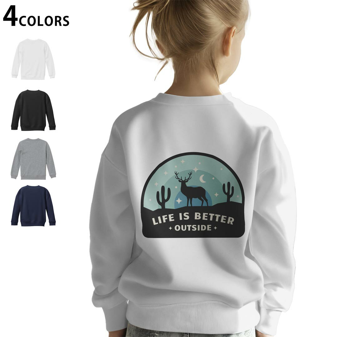 é¸ã¹ã‚‹3カラー ãƒãƒƒã‚¯ãƒ—リント スウェットレーナー ã‚ッズ 男女兼用 ç”·ã®å 女ã®å ユニセックス unisex 長袖 デザイン リブ ホワイト ブラック 白 é»’ グレー ãƒã‚¤ãƒ“ー 110 130 150 trainer sweat 032269 トナカイ