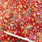 å‹ç¦…和紙 è¯ã‚„㋠扇ã¨å°æ¡œã‚’散りã°ã‚㦠毬 糸巻 赤地 大判 ç´„63x93cm åƒä»£ç´™