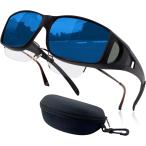 眼é¡ã®ä¸Šã‹ã‚‰ 掛ã‘られる オーãƒãƒ¼ã‚µãƒ³ã‚°ãƒ©ã‚¹ ケース付ã åå…‰ 車 é‹è»¢ç”¨ 釣り ゴルフ UV400 紫外線カット(ミラーé’)