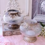 アンティーク風 ガラスベース 花瓶 フラワーベース LEDã‚ャンドルホルダー ホワイト ゴールド ラウンド ゴブレット (135) ガラス製 ヨーãƒãƒ”アン コンãƒãƒ¼ãƒˆ ベ