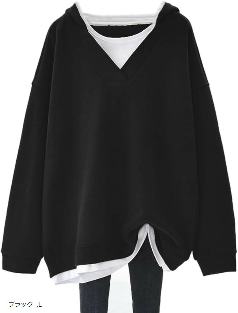 パーカー レディース スウェット 長袖 切り替㈠é‡ãç€é¢¨ ゆã£ãŸã‚Š ã‚·ãƒ³ãƒ—ãƒ« 薄手 大ãã„サイズ 体型カãƒãƒ¼ ã‹ã‚ã„ã„ ç€ç—©ã› (ブラック, L)