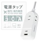 カシムラ 国内・海外両用電源タップ 100〜240V入力対応 コード1m AC3 A/C 2P 2.4A ACコンセント3口合計1400W /