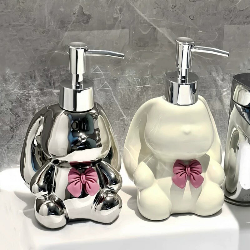 A015325-1シャンプーボトル ディスペンサーウサギ型 ソープディスペンサー 陶器製 ãƒãƒ³ãƒ‰ã‚½ãƒ¼ãƒ—ボトル ã‹ã‚ã„ã„ ãƒªãƒœãƒ³ä»˜ã æ´—颿‰€ã‚ッãƒãƒ³ インテリア 置物 ãƒã‚¹ç”¨å“