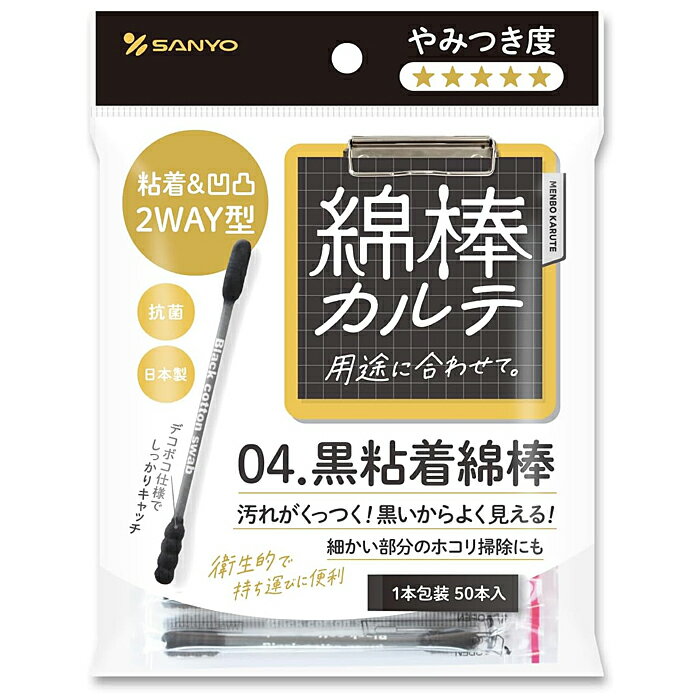 綿棒カルテ 04.黒粘ç€ç¶¿æ£’ 50本(1本包装) 山洋