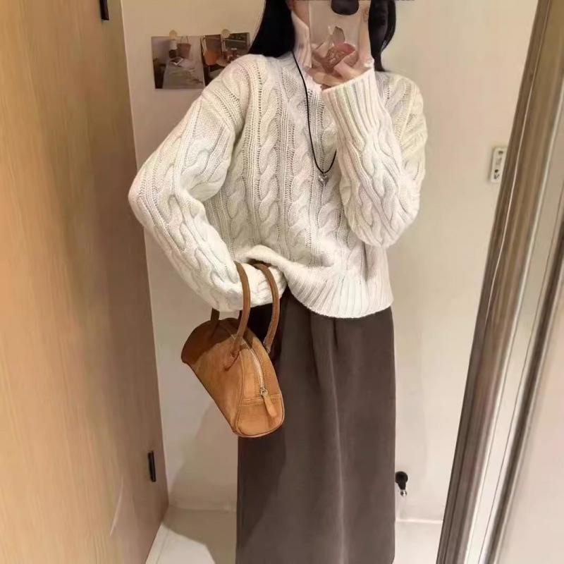 セーター レディース 秋冬 ãƒã‚¤ãƒãƒƒã‚¯ ケーブル編㿠100%ウール ルーズ 厚手 ショート丈 インナー ゆã£ãŸã‚Š æš–ã‹ ãƒ‹ãƒƒãƒˆ トップス レイヤード ã‚¦ãƒ¼ãƒ«ç´ æ 高級感 ベースレイヤー