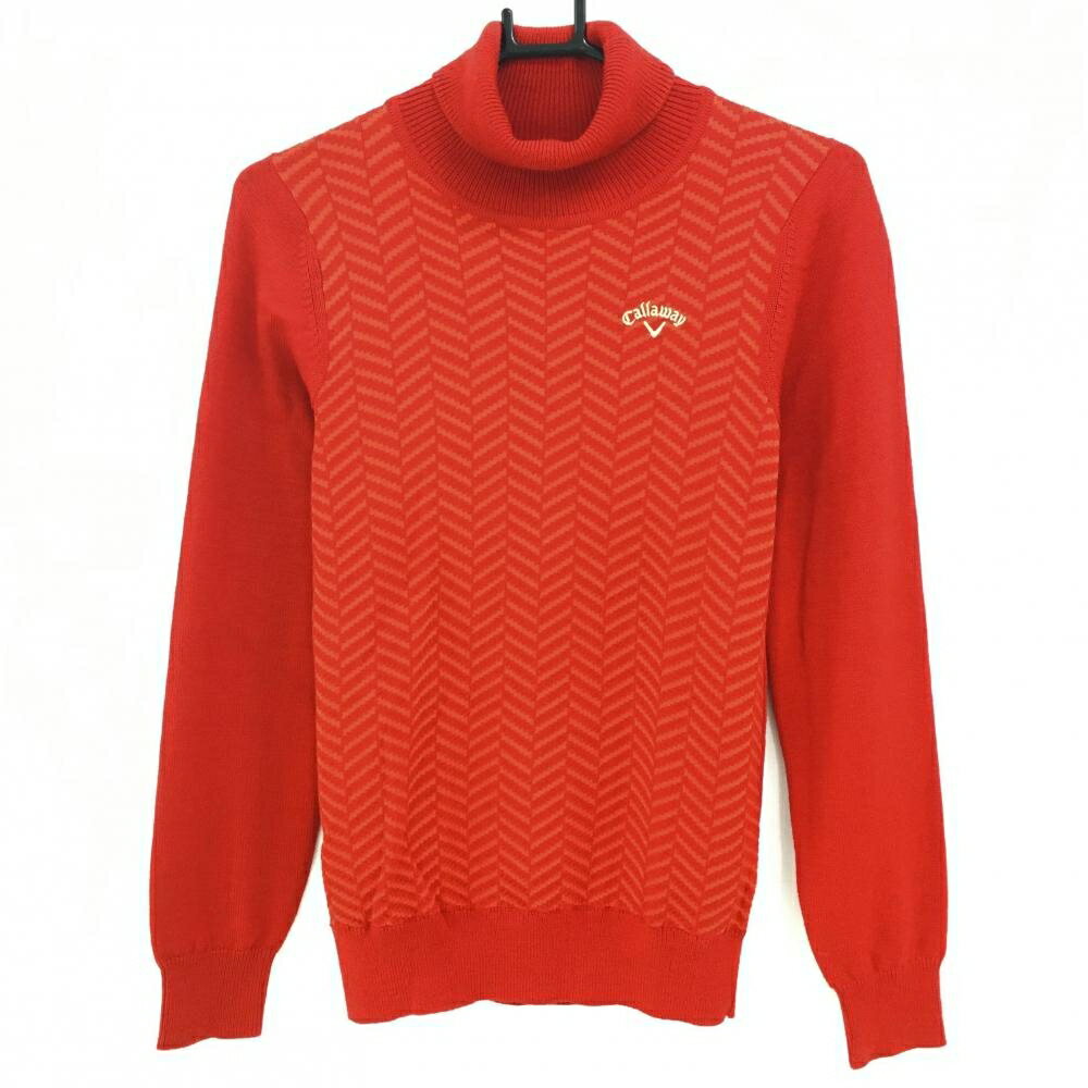 ã€è¶…美å“】ã‚ャãƒã‚¦ã‚§ã‚¤ タートルãƒãƒƒã‚¯ã‚»ãƒ¼ã‚¿ãƒ¼ レッド×オレンジ ギザギザ柄 ウール混 ニット レディース M ゴルフウェア Callaway