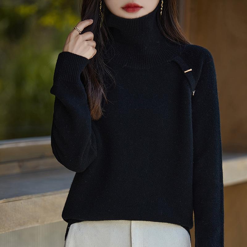 秋冬 レディース セーター タートルãƒãƒƒã‚¯ ウール ゆã£ãŸã‚Š ç„¡åœ° プルオーãƒãƒ¼ 肩メタルボタン インナー ニット トップス 暖㋠レイヤード