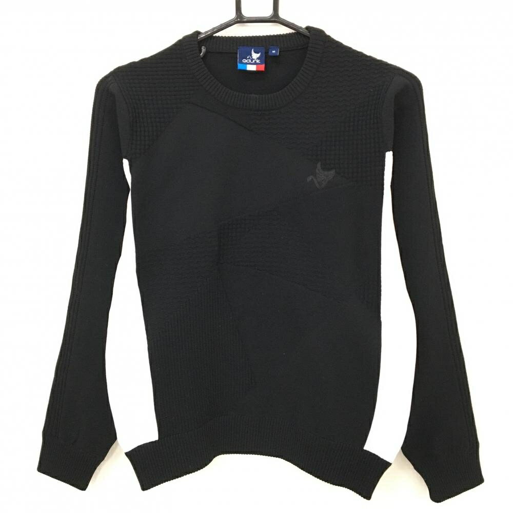 ã€ç¾Žå“】クランク セーター 黒×白 ãƒã‚´åˆºã—ゅㆠニット レディース M ゴルフウェア CLUNK